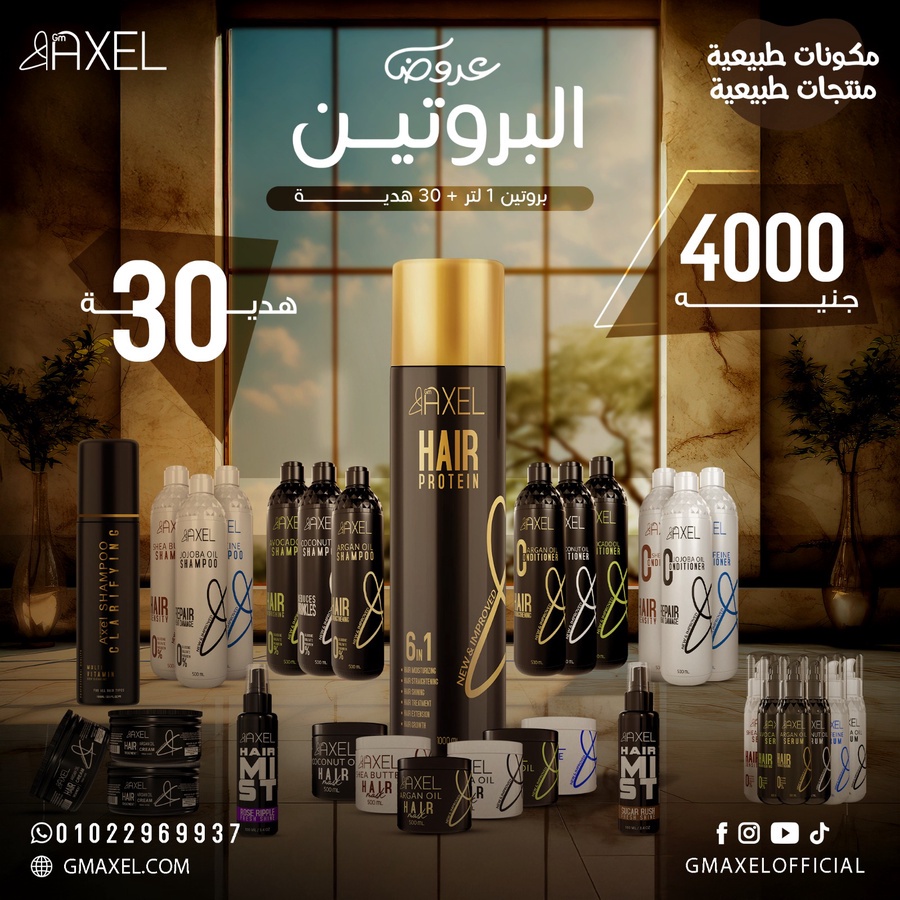 Keywords: بروتين بدون فورمالدهيد, بروتين شعر 1 لتر, فرد الشعر, علاج الهيشان, بروتين GM Axel, protein hair treatment, بروتين صالونات, نعومة ولمعان, عرض 30 هدية