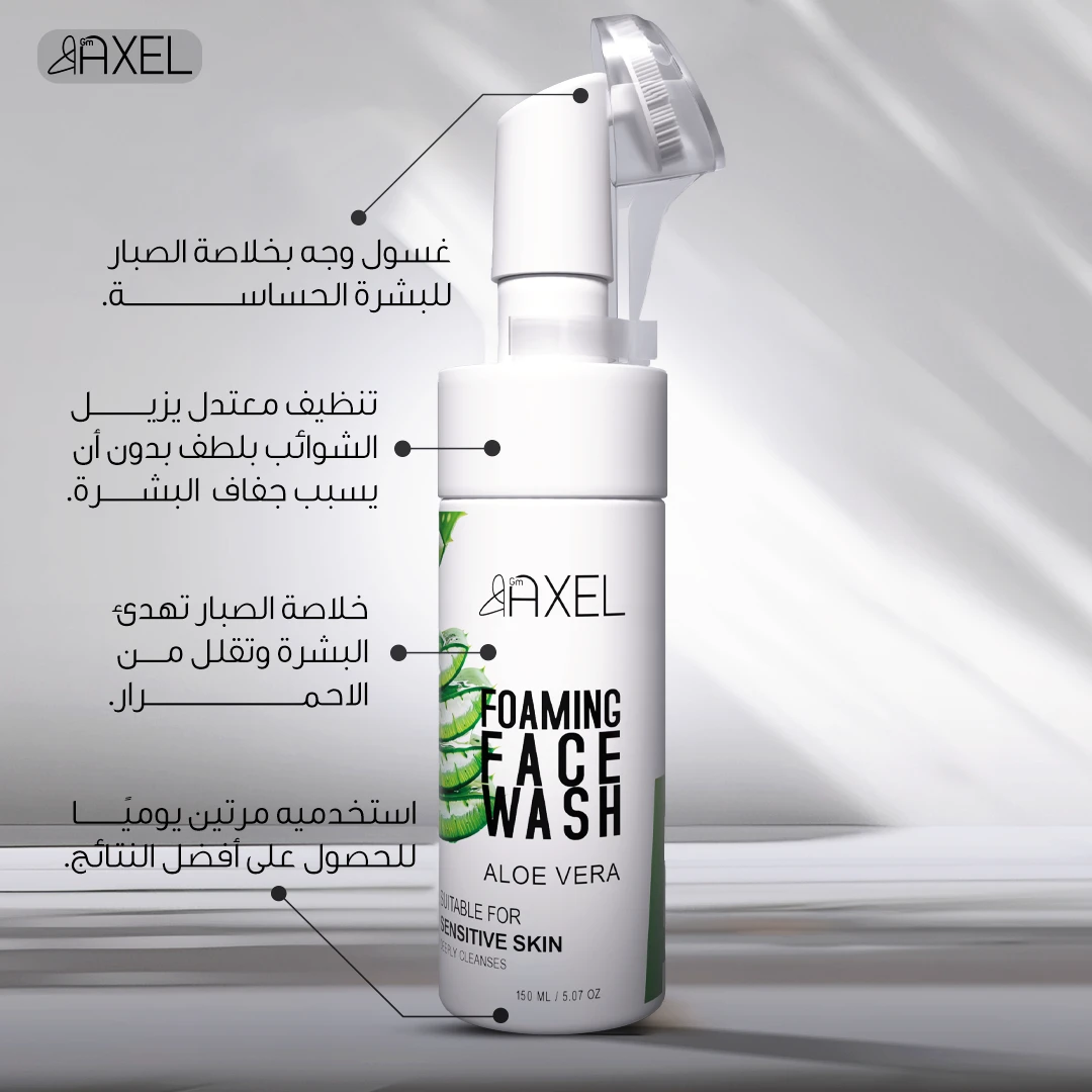 غسول الصبار من GM Axel للبشرة الحساسة ينظف بلطف دون تهيج, يساعد على تهدئة الاحمرار ويحافظ على ترطيب البشرة, مناسب للاستخدام اليومي