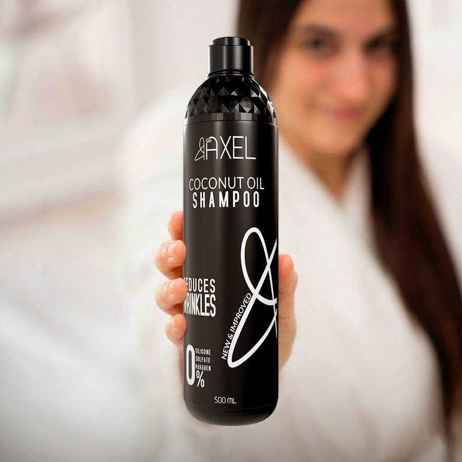 شامبو GM Axel بزيت جوز الهند لترطيب وتغذية الشعر الجاف والمتعب، يمنحه نعومة ولمعان طبيعي من أول استخدام.