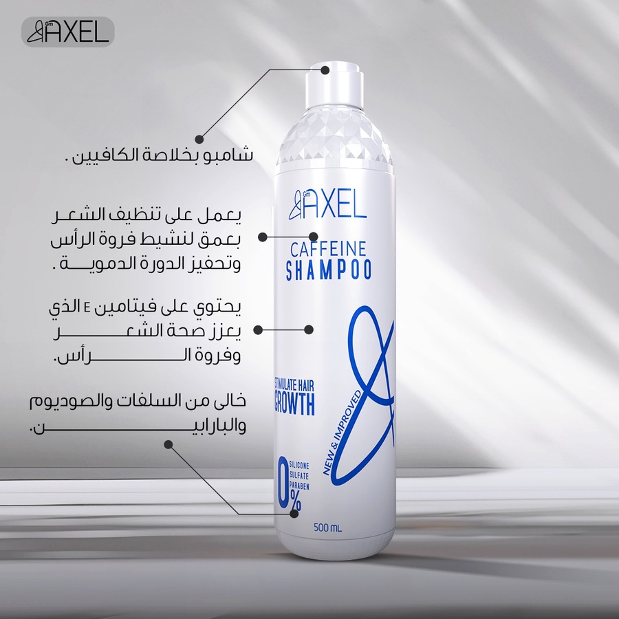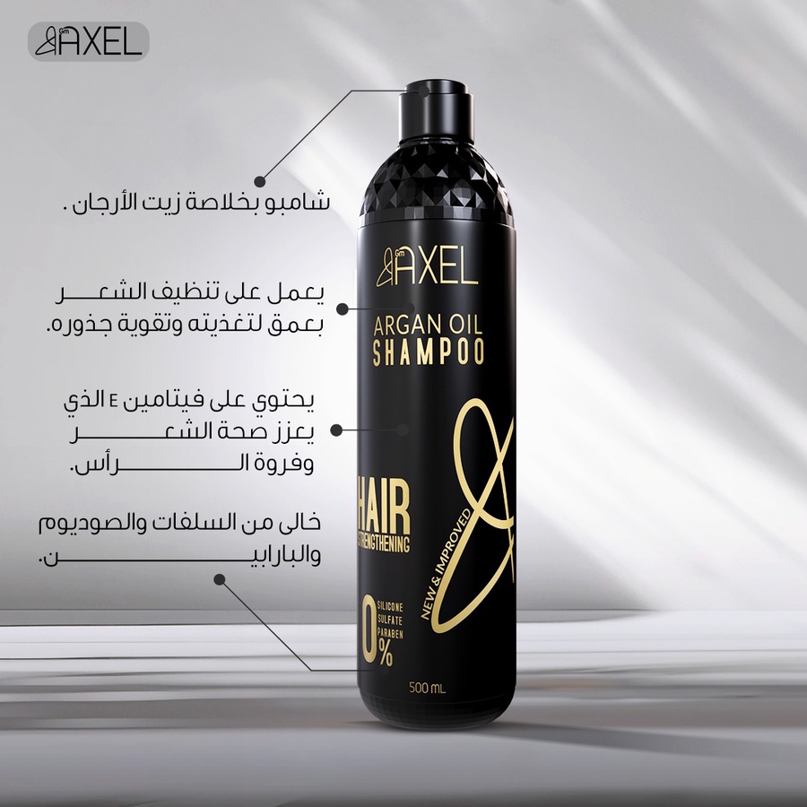 شامبو GM Axel لتقوية وتنظيف الشعر بتركيبة مغذية تساعد على ترطيب الشعر ومنحه نعومة ولمعان. مناسب للاستخدام اليومي