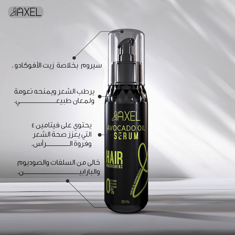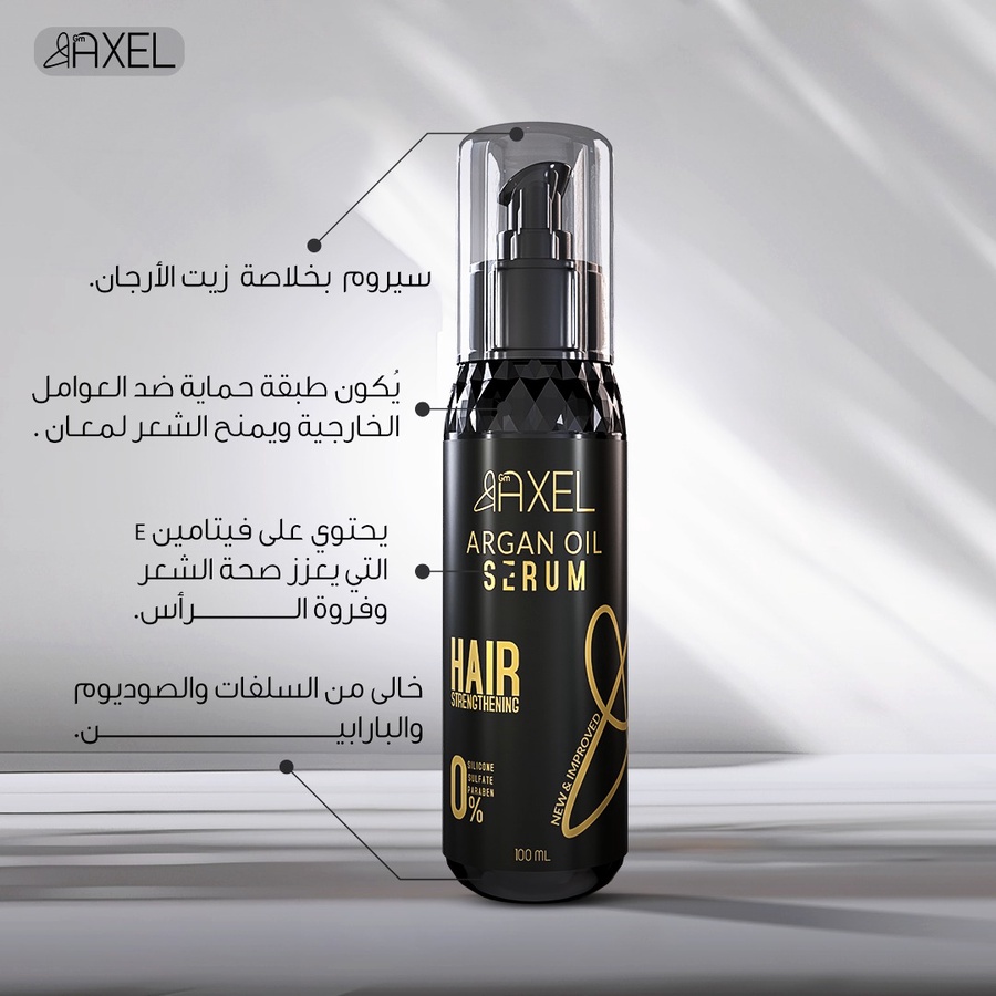 سيرم GM Axel لتغذية الشعر وحمايته من التقصف والهيشان مع نعومة ولمعان صحي يدوم طوال اليوم